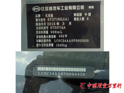 河南方先生去年8月26日买的车,车型是比亚迪F0蓝色,到了今年买保险的时候,发现比亚迪车出现了2个车架号的荒唐事,因为两个车架号信息的问题,方先生享受不了保险的优惠政策。方先生说,开始还和保险员争执了一会儿不敢相信是真的,结果到车上核实情况,一对比,果然是车上竟然出现两个车架号。车前挡风玻璃下面的车架号和本车出厂时候带的品牌明标上的的车架号等信息不一样。一车有两个车架号那不就等于一个人有两个身份证吗?或者就是拼装车等等,像这样的车辆有两个车架号的应该不是一辆整车上的东西,像这样的车辆是怎么通过安全,质量的检测线出厂的?方先生联系了比亚迪公司,但得到的回复是他们不做出任何赔偿,也不承担任何责任。只给他邮寄来一张新的品牌标志让方先生自己再贴上去。