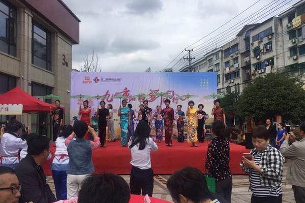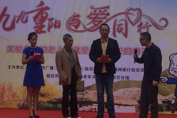 这次在临安举行“九九重阳、与爱同行”活动由浙江经济广播、临安市文明办、老龄办和稠州银行临安支行主办,临安市文联、市老年大学和文化馆共同协办。整个活动内容丰富,既有文艺演出,又有金融理财咨询、还有免费量血压、省级专家爱心义诊服务。按照重阳节的传统,登高、赏菊、吃重阳糕是必不可少的内容,主办方之一稠州银行临安支行特地为老人们安排了水果和糕点,还设专人给老年人在重阳节的温馨一刻进行拍照留念。再看舞台上,歌曲、舞蹈、时装秀、魔术、有奖互动轮番上演,迎来老人们阵阵的掌声和笑声。整场既体现了老年人对生活的热爱,也有年轻人对老年人的敬爱,更有我们社会各界对老年人的关爱。
