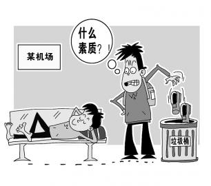 日前,在厦门机场,有一个年轻人选择了对这种行为说“不”,将此人的鞋子扔进了垃圾箱,并录下了视频。这则视频在网络上疯传,引起了网友们广泛讨论。(《海西晨报》) 朱慧卿/图