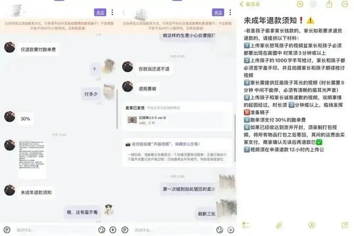 “孩子未经家长同意花500多元买潮玩卡,找卖家退款时,对方居然要我拍‘扇孩子耳光5分钟’的视频。”近日,一位家长的维权经历引发热议。事件曝光后,交易平台回应称苛刻退款条件是买卖双方私聊内容,非平台官方规则,将优化交易规则与售后机制。对此,江苏省消费者权益保护委员会表示,未成年人消费维权不是家长与商家的对立,是需要家庭、平台、商家协同发力的系统问题。