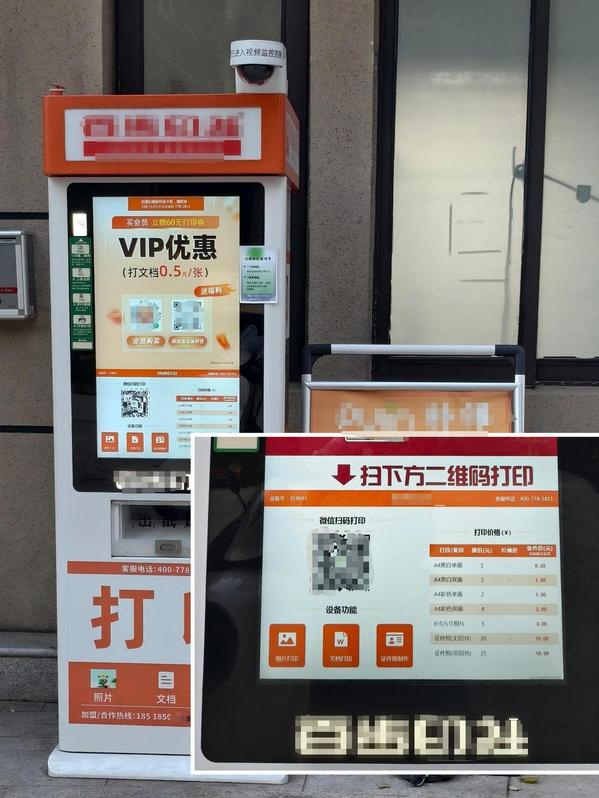 记者在走访各大酒店时,还走访了酒店周边的街边打印店、查看了居民小区的自助打印设备。记者发现,街边打印店黑白打印价格普遍为每页0.5元至1元,彩色每页为1元至2元;自助打印设备的A4黑白单面打印会员价是每页0.5元,非会员价是每页1元。