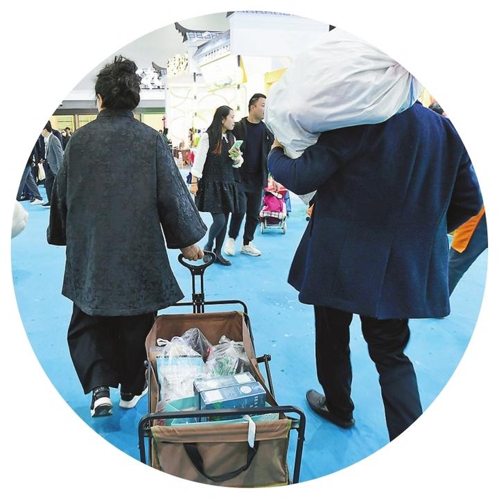 和徐建新交流时,记者发现一个有趣的现象:不少来逛农博会的人都拉着各色“购物车”,如小拖车、婴儿车等,“购物车”里的货物来自全国各地,成为农博会的一道“风景”。