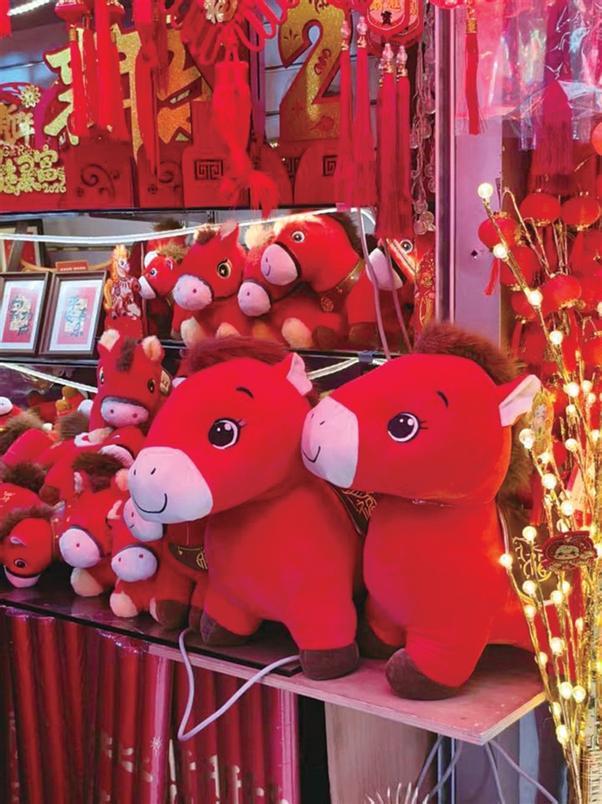 杭州各大超市的传统年饰区也一片红火,随处可见的中国红拼凑出了浓浓的年味,新年货品同样很齐全,各类小马公仔、灯笼、春联、新年摆台、福字、中国结应有尽有,还有带小颗粒元宝的财神摆台和金色的福桶。