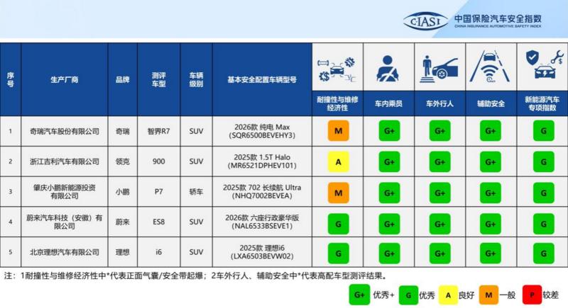 中国保险汽车安全指数2025年测评车型第三次结果发布