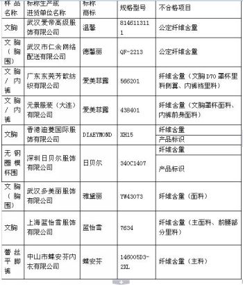 | 市场抽检 温馨等标称品牌文胸虚标纤维含量 | | | |