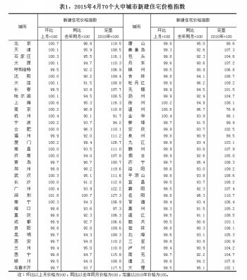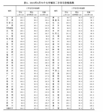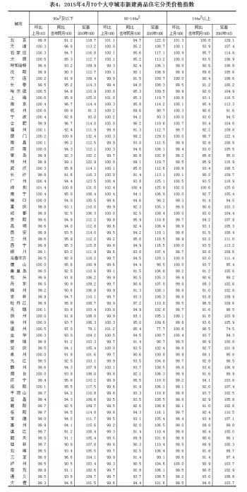 附注: 1、现行《住宅销售价格统计调查方案》自2011年1月起开始实施。 2、调查范围。住宅销售价格的调查范围为70个大中城市的市辖区,不包括县。 3、调查方法。70个大中城市的新建住宅销售价格、面积、金额等资料直接采用当地房地产管理部门的网签数据。二手住宅销售价格调查为非全面调查,采用重点调查和典型调查相结合的方法,按照房地产经纪机构上报、房地产管理部门提供与调查员实地采价相结合的方式收集基础数据。 4、新建住宅含保障性住房;新建商品住宅不含保障性住房。 5、价格指数的计算方法详见中国统计信息网《住宅销售价格统计调查方案》。 6、表格中若含“——”,表示本月无成交记录。 | | | | 来源:国家统计局网站 作者: 编辑:陈俊男 | | | |