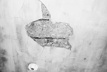 在居民李先生家,记者看到一个检测保留下来的楼板钻孔。记者注意到,楼板的厚度很薄,混凝土中夹杂着细细的黄砂,用手轻轻抠动,簌簌地落下。在2号楼一居民家中,记者看到客厅的楼顶裸露着生满铁锈的钢筋,仔细观察后发现,生锈的钢筋很细很扁,且间距稀疏。客厅的地面明显凹陷,成弧状,记者小心翼翼地走上去,脚下发颤。在几位居民的崔促下,记者退到了屋外。居民张先生说,他原本打算2011年5月1日结婚,新房用来当婚房,装修时发现房屋存在严重的质量问题,只好停止施工,另租了房子结婚。