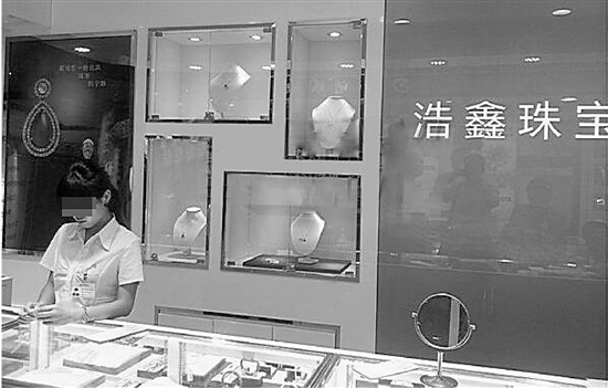 浩鑫珠宝在大商场内的专柜,装修考究。