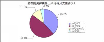 爱美之心人皆有之,花钱来给美丽加分,消费者是乐意尝试的。调查结果显示,年龄在18岁-40岁的消费者对护肤品的关注度较高,他们相信,在动不动拼“颜值”的当下,选择一款适合自己的护肤品无疑可以在保“颜”之路上祝你一臂之力。但他们更青睐于哪个价位的护肤品呢?(见图1)统计显示,有46.96%的消费者平均每月购买护肤品的支出在100元-500元,有38.19%的消费者平均每月支出在100元以下,11.10%的消费者平均每月支出在500元-1000元,仅有3.75%的消费者每月支出在1000元以上。从数据上可以看出,每月在护肤品上投入超过500元的消费者仅占14.85%,这说明,消费者对于中档化妆品的消费需求占据了市场主流。