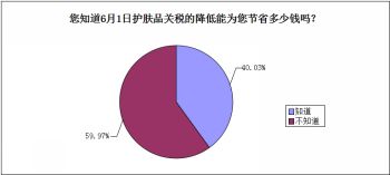 6月1日,我国降低护肤品进口关税税率高达60%,但59.97%的消费者不知道关税下调能给自己节省多少钱(见图2),另有70.95%的消费者表示关税下调对自己选择护肤品影响不大(见图3),这说明消费者对于护肤品价格的敏感度正在降低。