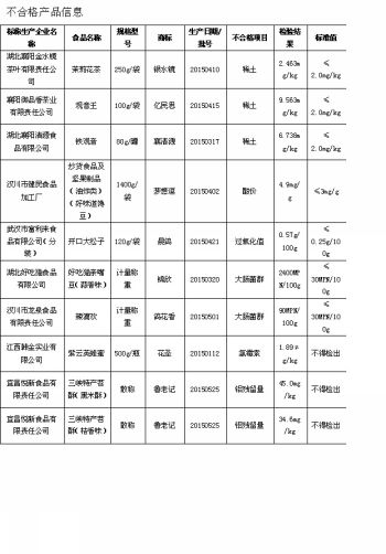 湖北省食药监局已要求相关市州食品药品监管部门按照有关法律法规的规定,对本次食品安全监督抽检中的不合格产品及其生产经营企业依法处理。