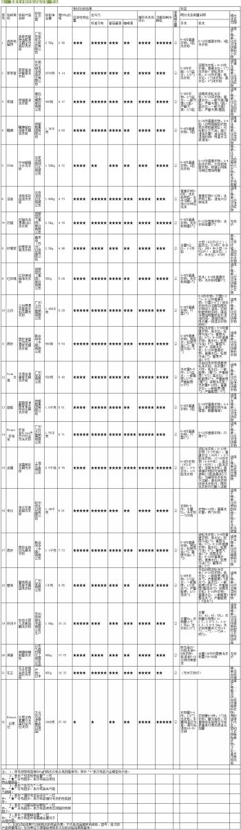 3.一些样品的使用说明指导性不强,影响洗衣效果。产品的标签说明是消费者了解所购买产品的基本信息和正确使用产品的重要说明。30款样品的产品标签对洗涤用量和洗涤范围的描述方式五花八门。我们发现,有的样品对手洗、机洗以及衣物的件数有详细的用量说明,有的还明示了不同洗涤衣物的重量所用的克数,文字叙述非常细致,但是,产品包装中无衡量用具,消费者无法按其说明定量使用。