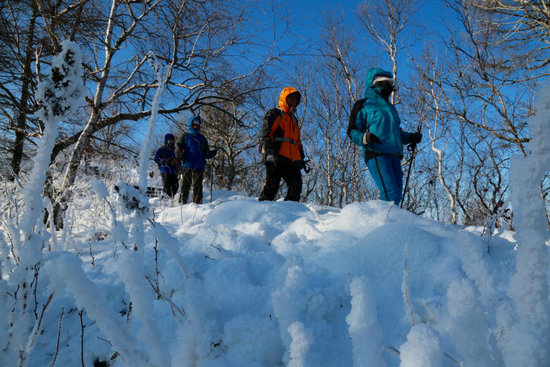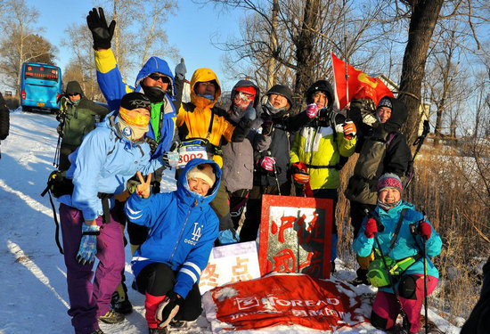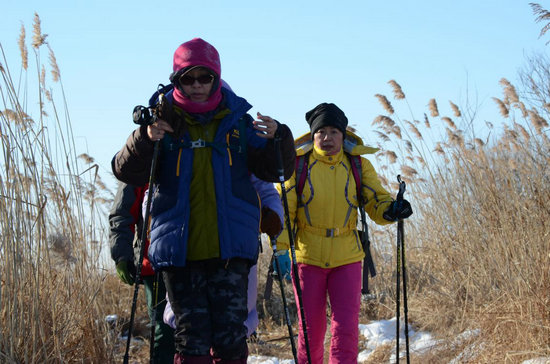 虽然和其他站的全国徒步大会相比,五大连池站的线路难度并不是很大,但是却遭遇了低温的挑战。比赛第一天,室外气温只有零下33度,可谓滴水成冰,这给选手们的徒步增加了很大的难度,而很多没有做好保暖工作的选手连连叫苦。“其实我发现大部分选手都因为怕冷,所以穿了特别多的衣服,其实在这样极端低温天气下的着装是有技巧的,最好按照三层着装原则来着装,很多选手穿了很厚的羽绒服,但是出汗之后羽绒服无法散发水蒸气,最后会让人感觉更冷。另外在鞋的选择上也很关键,建议大家穿保暖的高帮登山鞋,这样能够防止进雪。”