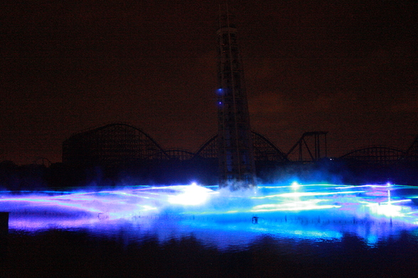 在技术创新上,出于上海欢乐谷上空航道安全及绿色环保的考虑,《天幕水极》摒弃传统烟花,创新采用了烟雾小、焰温低、气味轻的 “焰火”元素。长100米、高8米的焰火从湖心喷薄而出,配合激光、水幕在湖面上打造大气磅礴、水火交融的焰火芭蕾。