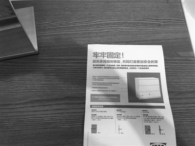 上周五,杭州市消保委、余杭区市场监管局与余杭区消保委共同对宜家杭州公司进行了督促指导,要求企业对已经购买马尔姆(Malm)抽屉柜的杭州消费者,在相关法律法规的基础上,以更人性化的处理方式、最大限度地保护消费者的安全权。