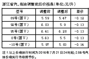 成品油价迎来年内第二次下调,这对于不少车主而言,是个利好消息。昨天傍晚,记者从浙江省物价局官网获悉,从今天零点起,汽、柴油价格(标准品)每吨分别降低155元和150元。其中,92号汽油和0号柴油每升均下调0.13元。