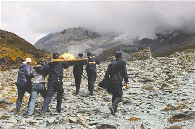 民警四人一组轮流抬担架 徒步20公里转移驴友遗体