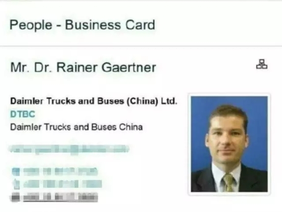 在最初爆料微博中,该外籍男子被指认为“奔驰驻华高管”。戴姆勒大中华区21日发布的声明则称,该男子是戴姆勒卡客车(中国)有限公司的一名员工。不过据网上爆料,此人名叫Rainer Gaertner,是戴姆勒卡客车(中国)有限公司总裁兼CEO,中文名叫高海纳。