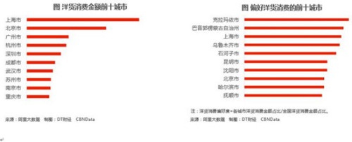 《报告》显示,2017年年货节期间天猫国际的销售额较去年同期增长了38%,人们对洋年货的热情继续增长。无论是韩国面膜、日本零食还是来自欧洲的母婴产品,捧红这些热销品类的无一例外都是女性剁手党。论洋货销售额,江浙沪包邮区和帝都等强消费城市自然跃居榜首。但论对洋货的偏好度,即洋货在各城市的消费占比来看,克拉玛依市、巴音郭勒蒙古自治州、乌鲁木齐和石河子四座来自新疆的城市竟跻身榜单前五。来自“异域风情”的剁手党果真偏好异域的年货,电商的渗透也正弥补了线下渠道的不足。从各省剁手党的洋年货偏好商品来看,广东、山东人“浮夸”地爱买表,浙江、江苏人最爱母婴用品,上海人则最爱买零食。