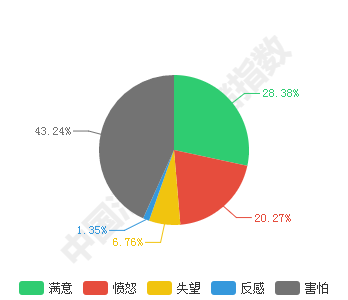 然而,增加的只有负面情绪。曝光后,短短时间内,消费者害怕、愤怒情绪交织快速递增,害怕情绪跃居第一,占比达43.24%。满意迅速减少20%多(见图3)。