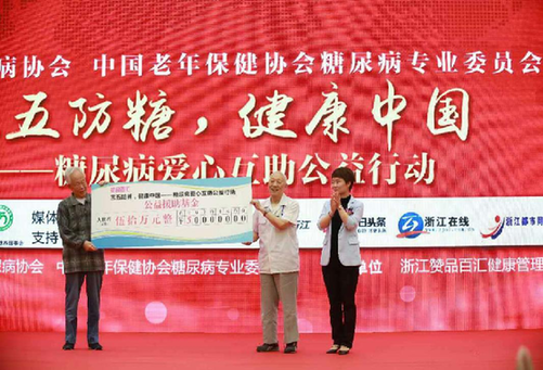 作为承办方的浙江赞品百汇健康管理有限公司在活动现场被中华糖尿病协会授予了理事单位,浙江赞品百汇健康管理有限公司致力糖尿病的研究,为糖尿病的治疗做出来贡献,现场浙江赞品百汇健康有限公司还在此次公益活动上为糖尿病患者们捐献了50万元的公益援助基金。