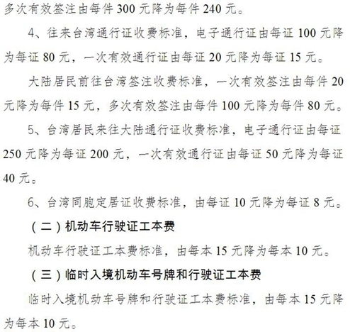 《通知》规定,自2017年7月1日起,降低电信网码号资源占用费、频率占用费、公民出入境证件费、机动车行驶证工本费、临时入境机动车号牌和行驶证工本费、水土保持补偿费、农药实(试)验费、集成电路布图设计保护费等收费标准。