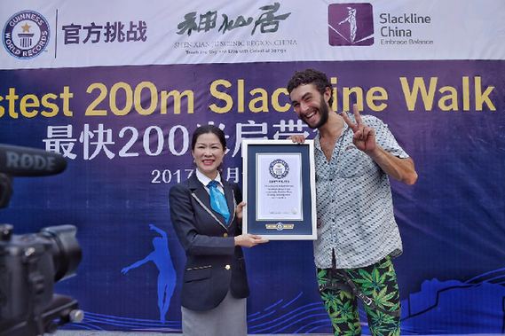 2017年7月17日,由国际扁带发展联盟(International Slackline Development Organization) 发起的“最快200米扁带行走”吉尼斯世界纪录挑战在中国首个国际高空扁带运动国际推广基地、中国高空花式扁带运动起源地神仙居景区进行。最终来自比利时的选手丹尼尔·拉吕厄尔凭借出色的发挥,以4分17秒的惊人速度走完全程,缔造了这项全新的吉尼斯世界纪录。