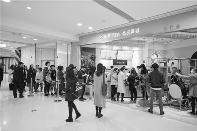 在西溪银泰城一家名为SunFTea么么果茶的店中,浅粉色与浅绿色相间的墙面,火烈鸟和顽皮豹的玩偶。品牌负责人刘冠杰表示,自11月开业以来,生意的火爆程度超出了自己想象。“刚开业的时候,一天能销售上千杯,最好的一天营业额达到了几万元。”刘冠杰说,经常有顾客拿着饮料拍照就能拍上十几分钟。