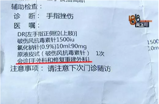 徐先生的小姨子:“不是,不是,就是他打了电话,叫了一个医生过来,然后又到那边会诊,那边那个办公室说的。(医院急诊外科 金医生:那么就不是这个办公室咯?)不是这个办公室。” 当时会诊的房间是哪一个,徐先生的小姨子也记不清了,不过她当时用手机拍了电脑里的X光照片,电脑上有编号。 徐先生的小姨子:“电脑编号对一下,5号电脑。” 医院急诊外科 金医生:“那看一下嘛,5号电脑就这台嘛。” 5号电脑所在的诊室是104室,是急诊骨科手外科的诊室。 也就是说,当时大医院首诊的是急诊外科的金医生,但是金医生还请了手外科的医生来会诊,手外科当天急诊当班的索医生也主动赶来,说要证明自己不是医托。 徐先生的妻子:“我不知道他姓什么,当时就是他跟我们讲的。(他当时怎么讲的?)他说这个手术我们这里可能做不了,你们去江城骨科医院,那个时候他还给我翻了手机上江城骨科医院的案例,而且我看了一张断手的照片,他还翻给我看过。(你确定是这位医生?)就是他。” 当时被急诊外科金医生请来会诊的,就是手外科的这位索医生。 医院手外科 索医生:“对,是整个完全离断,而且血管损伤很重,接近关节的,那我说,我这儿接可能性比较小,就是说有坏死的几率,那我说,你要想肯定接活的话,那我这儿肯定没这个把握了,如果要我保证,那你去别的医院看,我是没这个本事的。(那有没有说江城医院呢?)那我肯定没有说。” 徐先生的岳母:“说了,就是你说的,你当时还说了,我给你写,后来我老公说,我自己写,你报,我自己写,你报的江城医院。” 徐先生的岳母说,当时对方不但推荐了江城医院,还报了一个手机号码,说是到了江城医院后,可以联系一位苏医生。而实际上,到了江城医院后,徐先生并没有联系苏医生,是一位龚医生给他岳父动的手术。 索医生在给自己所在科室的主任打完电话后,手指一连串操作动作,徐先生这边怀疑,他是在刻意地把手机通讯录里苏医生的号码删掉。 徐先生用索医生的手机,拨了那个手机号码,刚把号码拨全,还没有拨出去之前,有那么一瞬间,在这个手机号码下面跳出一行小字,放大再看,可惜太模糊,看不清楚具体内容,再拨,就不再有这行小字显现了。 这一段索医生跟所谓苏医生的电话对质,有点尬聊的感觉,时间有点长,我们完整记录下来了。 “江城”退回两万块 医院医务科 聂副主任:“对呀,各执一词,所以我也不知道听谁的,从我们医院的角度来说,从目前来说,我们没有接到说,有这方面的情况,这个也给我们一个提醒,我们后续也会认真调查,这个情况到底是真还是假。” 节目播出前,徐先生反馈,杭州江城骨科医院已经答应退还两万块钱。
