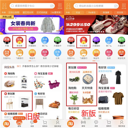 这是聚划算履行新使命、为品牌商家创造新机会的又一重要动作。在此之前,聚划算已打通淘宝天猫营销平台,并加速获得淘系资源倾斜——上周,手淘“六宫格”改版,聚划算入口位置进一步强化,从第二位跃至第一位,包括聚划算抢券、品牌折扣、淘抢购、天天特卖在内,几乎占据了手淘“六宫格”的近一半。