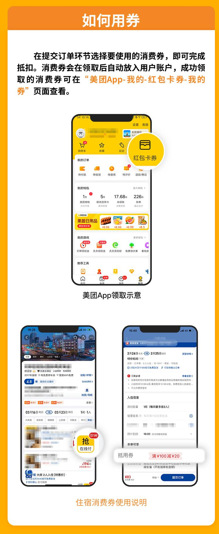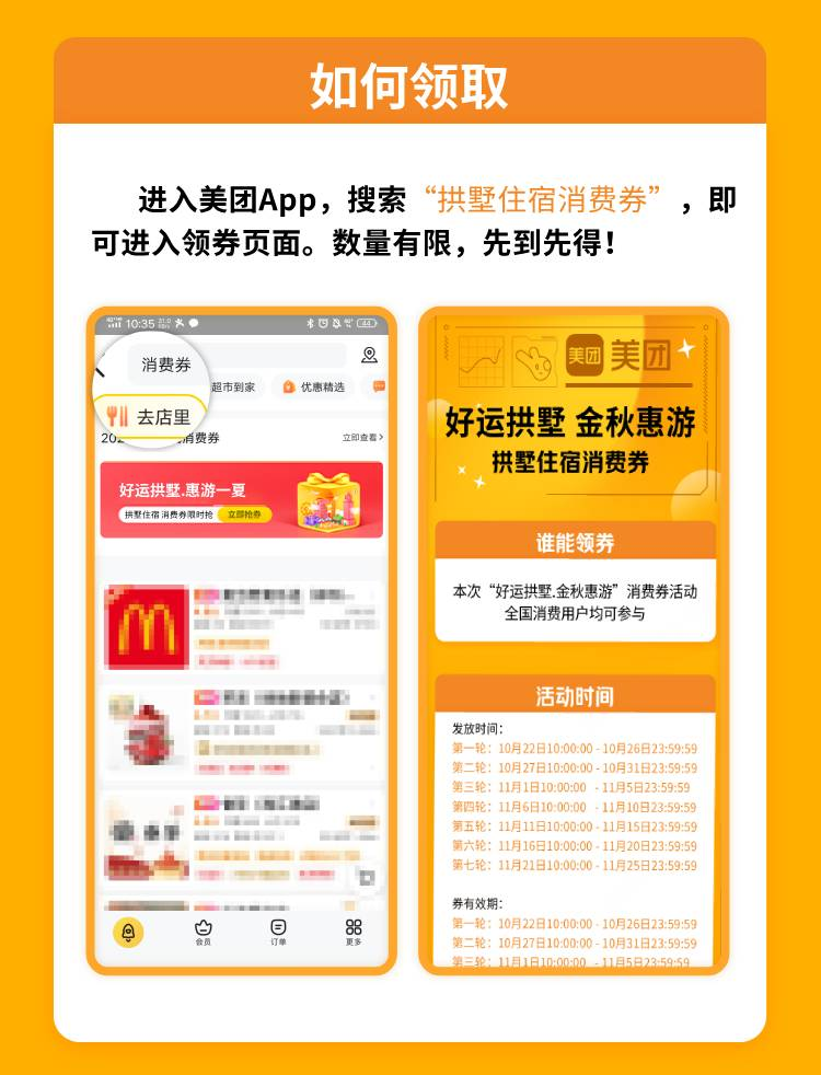 方式二(美团):打开美团APP,搜索“拱墅住宿消费券”即可进入领券页面,下单立享优惠!
