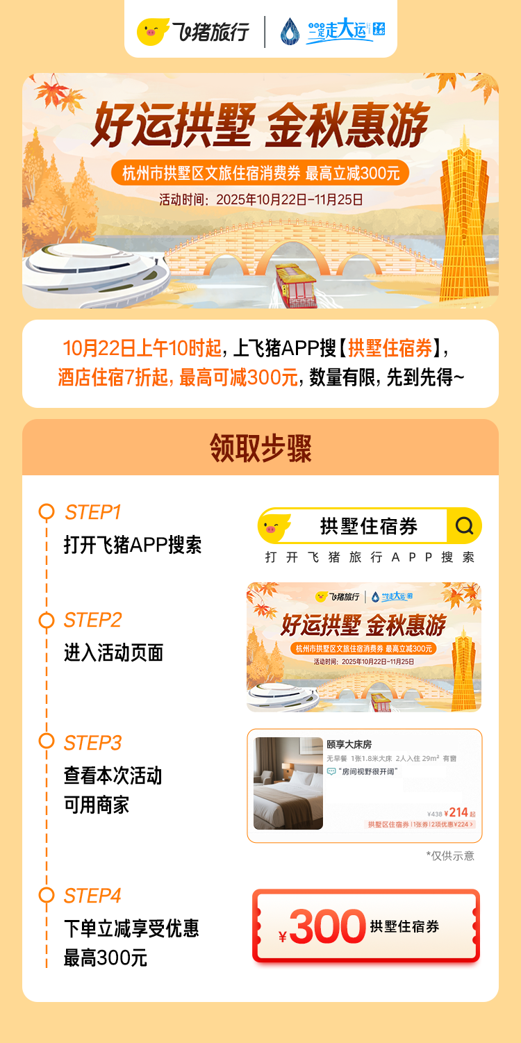 解释权归属:本活动最终解释权归杭州市拱墅区文化和广电旅游体育局所有。具体活动细则请以美团、飞猪平台活动页面实时展示为准