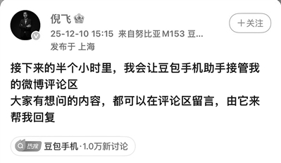 努比亚总裁在微博发文称“让豆包手机助手接管评论区”