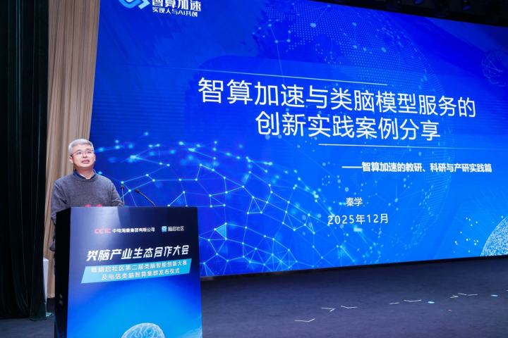 中国电子科技南湖研究院类脑实验室副主任刘庆杰详解脑启系列成果,发布国内首个异构融合类脑框架,实现大模型边端推理加速 50% 以上;智算平台支持百亿级脑仿真模型部署,服务超 7000 用户,超低功耗智能体在多场景规模化应用。