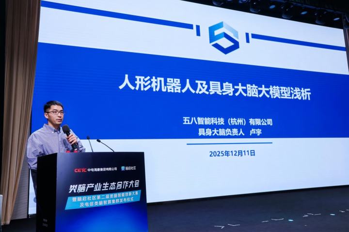 五八智能科技(杭州)有限公司交互决策组组长卢宇分享人形机器人研发经验,布局 “双足 + 四足” 产品谱系,突破 300N・m 大扭矩一体化关节等核心技术,自研 “元智” 具身大脑大模型,已在工业、文旅场景应用验证,建设杭州市人形机器人中试基地推进产业化。