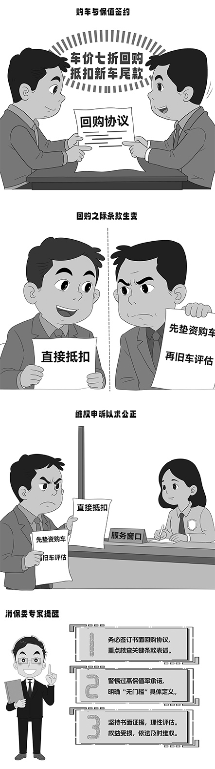 (三)消费者在选择汽车保值回购服务时,需牢记“书面优先、证据为王、理性评估”原则,切实增强风险防范意识,避免因“轻信营销、忽视条款”陷入消费纠纷。如遇权益受损,及时借助正规维权渠道,依法维护自身合法权益。