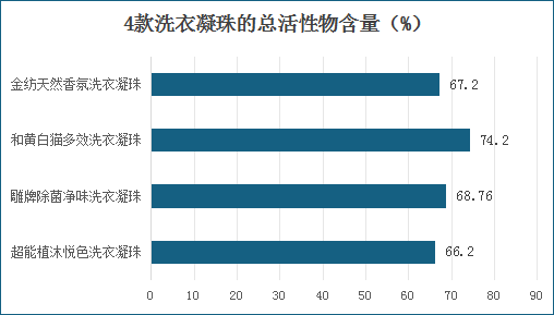 4款洗衣凝珠样品中,标称雕牌除菌净味洗衣凝珠的样品获五星,标称和黄白猫多效洗衣凝珠的样品获四星,标称金纺天然香氛洗衣凝珠、超能植沐悦色洗衣凝珠的样品获三星半。