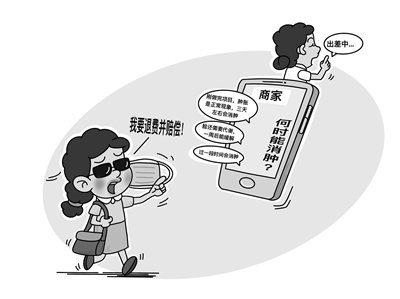 浙江泽鼎律师事务所律师夏谨言:“消费者认为商家提供的服务效果令其不满意,可以前往三甲医院进行诊断,并保留相关凭证,通过司法途径解决。现如今有不少商家通过优惠宣传吸引消费者到店,随后以专业话术促使消费,消费者应对商家的营销手段有心理预期,可以先体验项目,如若满意商家服务再继续购买。”