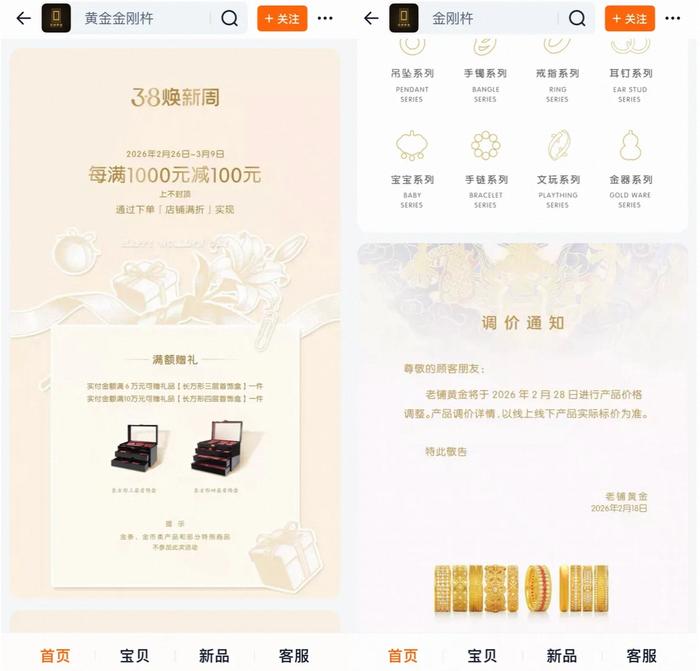 老铺黄金天猫3·8焕新周活动信息及提价通知