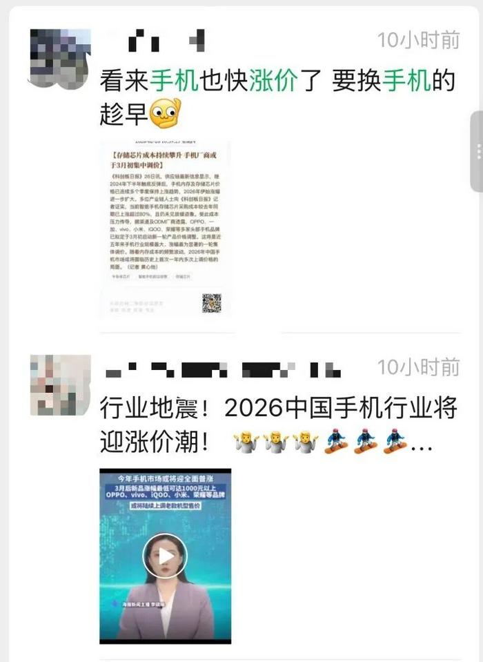 “手机马上要涨价了,换手机得趁早”“行业地震,2026年中国手机行业将迎涨价潮”……