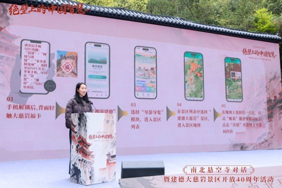 活动期间,大慈岩新版导游词与福卡系列文创产品也正式亮相,以更年轻化的语态和产品传递景区文化内涵。同时,包括小黑诸鸣、朱小杰、胡娜娜等在内的文旅星推官获聘,将利用各自在全网的影响力,通过短视频和直播,持续炒热“南北悬空寺”话题。