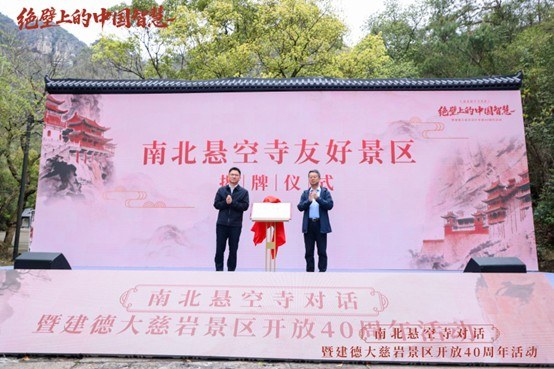 “四十年来,大慈岩尽显浙西山水灵秀,承载千年古建智慧,成为建德文旅的金名片。”建德市委常委、宣传部长蒋哲远在致辞中表示,此次与山西恒山悬空寺携手,既是一次南北古建技艺的交流互鉴,更是对中华优秀传统文化活化传承的生动实践,让绝壁上的中国智慧被更多人看见、铭记、传承。