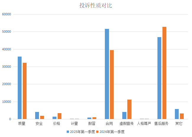 2025年、2026年一季度投诉性质对比图。(数据来源:广东省消委会)